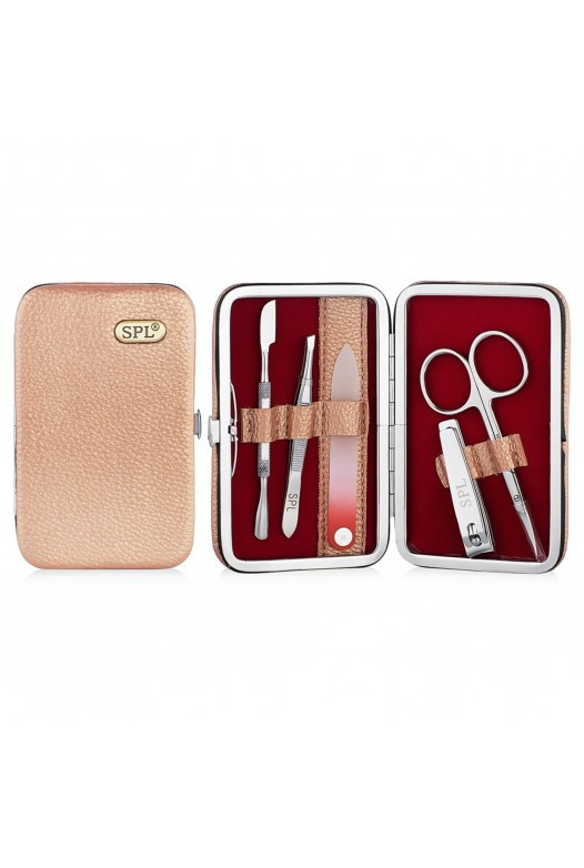 Німецький бренд SPL — відомий виробник високоякісних манікюрних девайсів, які забезпечують практичну і комфортну експлуатацію для своїх власників. Тому якщо ви хочете придбати манікюрний набір, зверніть увагу на наведену модель, що складається з 8 предметів, які зберігаються в елегантному бронзовому чохлі. За допомогою цих інструментів ви зможете виконати комплексну обробку нігтьових пластин на руках і ногах, а також попрацювати з формою брів як приємний бонус.